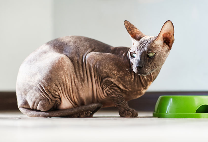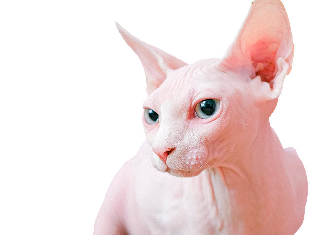 The Sphynx cat is an energetic and acrobatic performer who loves to attract attention. He has an unexpected sense of humor that doesn’t match his serious expression.
